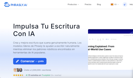 ❌ Phrasly está más centrado en humanizar contenido generado por IA, eliminar los rasgos “robóticos”, producir escritura que parezca humana, detectar contenido generado por inteligencia artificial y generar contenido con citas en determinados tipos (ensayos, artículos, blogs). Su especialidad es hacer que el contenido suene natural, evitar detección de IA y mejorar estilo